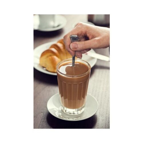 Galão is typically served in a tall glass, along with a packet of sugar. Of course, sugar is not a must – but many people like to make their galão sweeter to go along with their pastry.